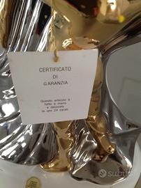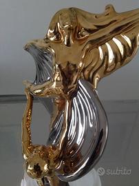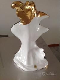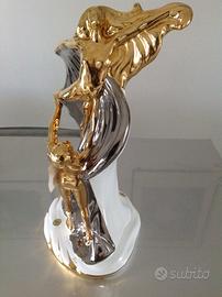 Bellissima statua Deruta originale, fatta a mano, smaltata, argentata e dorata con oro zecchino 24 carati. Vintage, anni 80. Altezza 30 cm. circa. Rappresenta un uomo che sorregge una donna e la eleva verso il cielo. Nuova nella sua confezione originale. Consegna a mano per evitare rotture.