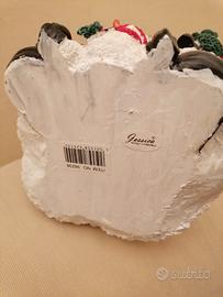 Un simpatico Babbo Natale in resina Con i pupazzi di neve. Marchio registrato Jessica Design collection Altezza 30 cm.