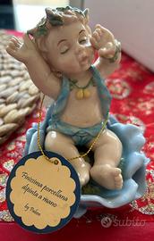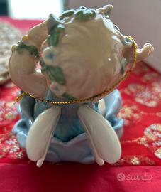Statua di finissima porcellana dipinta a mano originale Navel by Paben , angioletto seduto su un fiore.