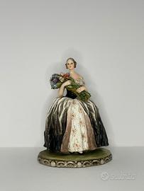 Statua di donna in porcellana Guido Cacciapuoti, anni 30/40. La statua e’ in condizioni spettacolari con ancora i suoi corori brillanti .