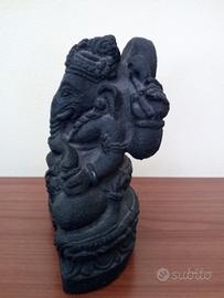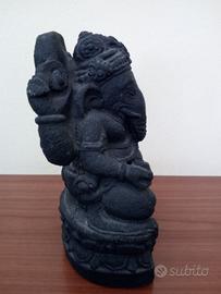 Figura decorativa Ganesha. Statua in pietra ollare nero ruvido. Altezza 15 cm. Originale acquistata in India.