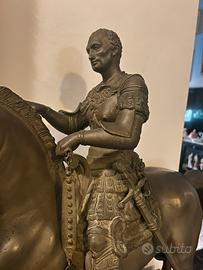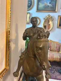 scultura equestre in bronzo raffigurante imperatore/condottiero in abiti militari di gusto neoclassico.