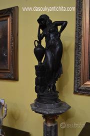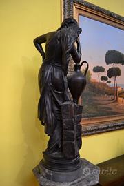 Statua raffigurante Rebecca , figura biblica nota per l’incontro con Isacco al pozzo in bronzo del XX secolo, scolpita con delicatezza, mostrando lineamenti del viso morbidi, indumenti fluidi e una postura naturale ed espressiva, siglata ‘fabrique en autriche’ marchio della manifattura e firma dell’autore Moreau