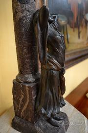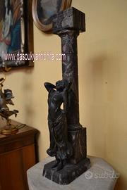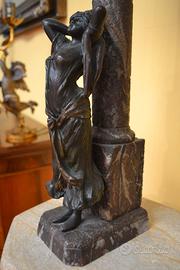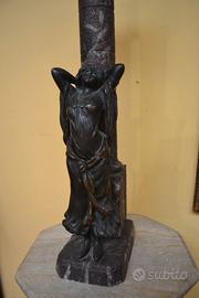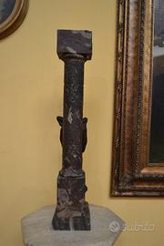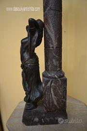 Appoggiata su una colonna in pietra in stile dorico caratterizzata da una superficie ruvida , sono visibile delle incisioni , base in marmo .