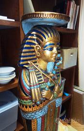 statua in gesso dipinto , Colonnina, raffigurante il FARAONE TUTANKHAMON , misura cm 22x30x90 , condizioni ottime , anche ritiro a santa marinella -roma