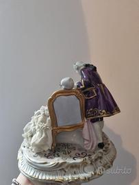 Vendo elegante statua in porcellana stile Capodimonte raffigurante scena galante settecentesca con coppia aristocratica.