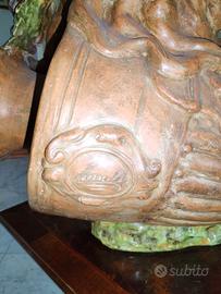 Statua in terracotta Toscana firmata, prodotto artigianale tutta dipinta a mano. Da arredamento interno o da portico esterno. Altezza 70 cm circa, larghezza massima 50 cm. Statua pesante di grande effetto in arredamento ed elegante. Se interessati la posso vendere completa del suo piedistallo sotto, cifra da concordare. Causa trasferimento la devo vendere perché non rientra nel mio arredamento. Non faccio consegna, da ritirare, persona seria no perdi tempo, grazie