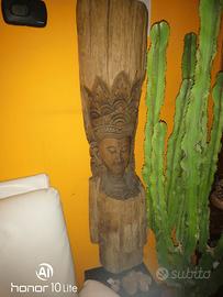 Statua in legno Birmana intagliata a mano con piedistallo. Alta 1.20 mt. Pesante.