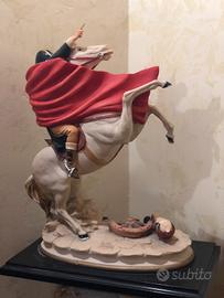 Figura della serie Miriam Valentino, modellata come Napoleone Bonaparte sul suo cavallo impennato, sollevata su una base ovale naturalistica, incisa "Miriam" alla base, altezza 39 cm, su una base di legno rettangolare. Totalmente integra.