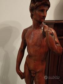 Statua in legno di David replica decorativa usata come arredo porta vasi piante e altro Altezza 1.40m.
