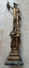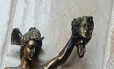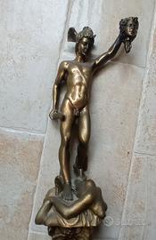 Riproduzione artistica del Perseo di Benvenuto Cellini, altezza 50 cm, peso 2,5 kg. Fusione in metallo (probabile ottone) con bella patina d'epoca su base in marmo venato. Ottime condizioni, ideale per arredamento di alto livello." condizione ottime, vendo a euro 350,00