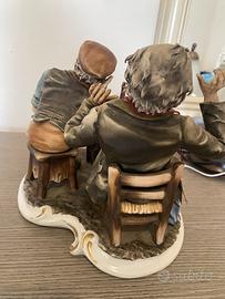 Gruppo figurativo raffigurante scena popolare di osteria con due personaggi seduti al tavolo, bottiglia e bicchieri, ricco di dettagli e di ottima qualita.