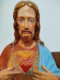 Statua rappresentante il Sacro cuore di Gesù, in gesso, dipinta a mano, altezza 81 cm, larghezza 22 cm