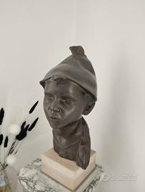 Scugnizzo napoletano in bronzo su base in marmo dello scultore De Martino