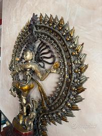 Grande manufatto originale indiano in ottone di Shiva danzante : 70 cm di altezza per 55cm di larghezza con 12 cm di profondità al piedistallo per un peso di oltre 25 kg