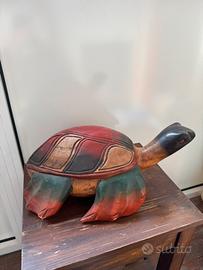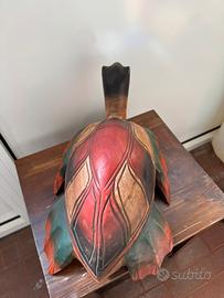 Questa statua raffigura una tartaruga in legno scolpito, con un design realistico e dettagli accurati. La tartaruga è rappresentata in una posa statica, con le zampe distese e la testa leggermente sollevata. La sua forma è ben definita, con un carapace arrotondato e zampe robuste.
