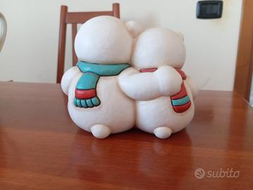 Bellissimi orsetti polari Thun, perfetti per un regalo romantico. Sono due statuette in ceramica, una raffigurante gli orsetti abbracciati e l'altra con gli orsetti che tengono un cuore. - Realizzate in ceramica di ottima qualità. - Sono in ottime condizioni, senza difetti. - Ideali per collezionisti Thun o per chi ama gli oggetti romantici.dimensioni 16x13 manca scatola originale