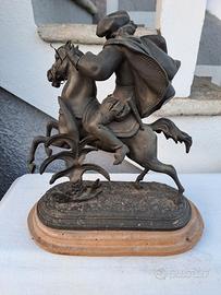 statua di bronzo con piedistallo in legno dim 40 x 35 pari al nuovo euro 80 più spedizione oppure ritiro a mano. cell. 334 336 3779