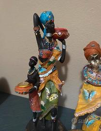 Statue in legno rappresentanti donne africane in una giornata di lavoro. Si vendono in coppia. Cambio per trasloco e nuovo arredo.