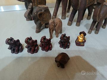 Statue di cammelli/elefanti realizzati in legno con montatura in rame,di varie misure,intero blocco