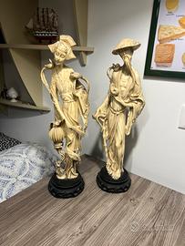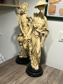 Alte cm 51 con base inclusa e larghe circa cm 15 in caldo color avorio credo siano in avoriolina o resina che rendono perfettamente il loro gusto esotico.