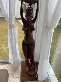 2 Statue africane in monoblocco di legno ,madre con figli e padre