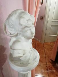 Statue in marmo di Carrara con relativi piedistallo, epoca fine 1800 inizi 1900.