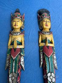 Vendesi coppia di statue indonesiane “Loro Blonyo” uomo donna, in legno dipinte a mano, acquistate personalmente al mercato Menteng di Giacarta (Java) e portate in Italia lo scorso anno.