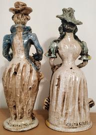 Coppia di statue in ceramica di Caltagirone, altezza 42 cm circa. Piccoli difetti come da foto.