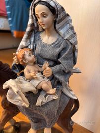 Dimensioni: Giuseppe 25 cm, Asino con Maria 28 cm.