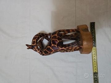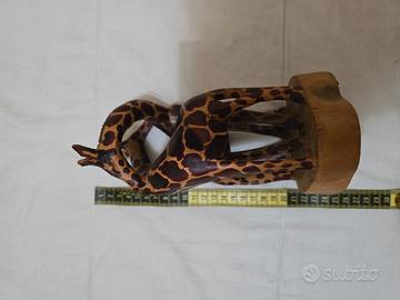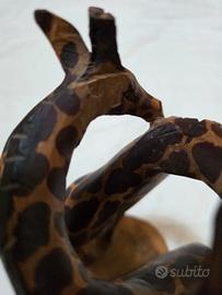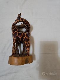 statuetta di due giraffe, in legno, ottime condizioni, unico difetto manca un pezzettino di orecchio (guarda ultima foto)