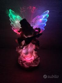 Deliziosa statuetta di un angelo con ali bianche e dettagli floreali. con sistema di illuminazione interna a batterie. L'angelo tiene in mano uno strumento musicale. altezza circa 20 cm