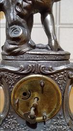 Statuetta antica in metallo pesante di fattura italiana, con orologio da verificare. Prezzo ed eventuale spedizione da concordare.