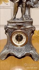 Statuetta antica in metallo con orologio
