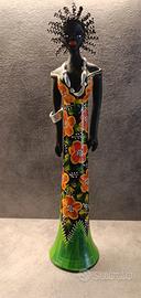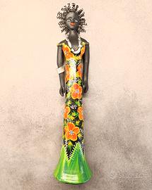 Statuetta artigianale brasiliana acquistata a Rio de Janeiro circa 20 anni fa. Realizzata e dipinta a mano, con corpo in terracotta edettagli molto curati. I capelli sono realizzati in metallo ricurvo, mentre l’abito è decorato con fiori tropicali vivaci.