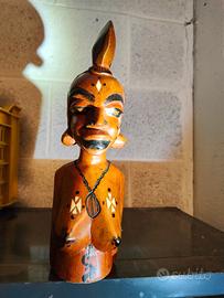 Statuetta busto etnico legno massello