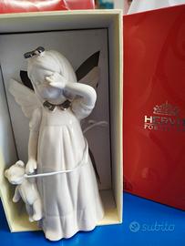 Angioletto in ceramica bianca e tocchi argento, marca Hervit, mai usato, ancora nella sua confezione originale
