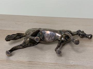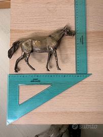 Statuetta in bronzo, raffigurante un cavallo in piedi, con la gamba anteriore sinistra leggermente alzata, in posa di movimento; la testa è allungata in avanti, con orecchie ben dritte e bocca semi aperta.