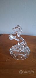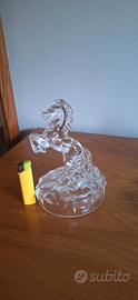 Splendida statuetta decorativa a forma di cavallo rampante, realizzata in cristallo di alta qualità RCR (Royal Crystal Rock). L'animale è raffigurato in impennata su una base sfaccettata, un dettaglio tipico che esalta la brillantezza del cristallo e riflette magnificamente la luce.