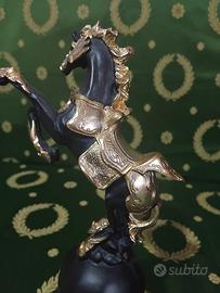 Statuetta Cavallo Rampante in Resina Nero oro/22cm