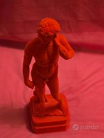 STATUETTA DEL DAVID DI MICHELANGELO IN GESSO CON COPERTURA IN FELTRO COLORE ROSSO VIVO CM.35