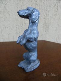 Statuetta di cane bassotto realizzata in peltro, altezza 9,5 cm. peso 0,275 kg.