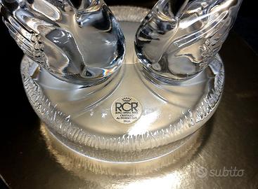 Fedeltà del cigno di cristallo - Statuetta cigni di cristallo italiano da collezione - RCR, cristallo 24% Pb Lasciate che questa coppia di cigni racconti la vostra storia d'amore! Due graziosi cigni realizzati in cristallo scintillante con il 24% di piombo, si avvicinano teneramente, personificando l'amore eterno, la devozione e l'armonia. I cigni sono il simbolo di un'unione forte che tiene al caldo anche nei periodi più freddi.Si tratta di una statuetta in cristallo raffigurante dei cigni del marchio italiano RCR (Royal Crystal Rock). Sulla base della composizione campeggia con orgoglio il sigillo originale RCR, segno di qualità e artigianalità italiana, che attesta l’autenticità del prodotto. L'adesivo afferma che è fatto di cristallo al piombo (Cristallo al Piombo 24%), il che significa che contiene il 24% di ossido di piombo, che conferisce al vetro incredibile lucentezza e brillantezza, raffinatezza e trasparenza. Molto probabilmente, la statuetta è stata distribuita negli anni 1980-1990 in Italia. Questo capolavoro sarà un regalo meraviglioso, un regalo ideale per un'occasione speciale: un matrimonio, un anniversario, un giubileo o semplicemente un segno di profondo amore e ammirazione. Un regalo magnifico per collezionisti, intenditori di classici, splendore aristocratico e semplicemente amanti dell'arredamento squisito. 📏 766 g, altezza - 13cm, 12 x 10 cm