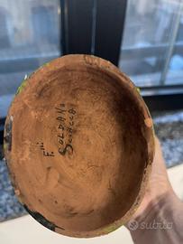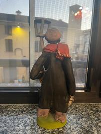 • Artista: "F.lli" sta per Fratelli Soldano. Non è un singolo artista famoso, ma una bottega di ceramisti di Sciacca, in provincia di Agrigento. Sciacca è uno dei centri storici della ceramica siciliana, famosa fin dal XV secolo. • Epoca: Le botteghe come i F.lli Soldano hanno prodotto questo tipo di figure popolari soprattutto tra gli anni '50 e gli anni '80 del '900. Lo stile, i colori a freddo e il soggetto "caratteristico" tipo il lampionaio o vagabondo sono tipici della produzione turistica e da collezione di quel periodo. Quindi siamo nel secondo Novecento. Il soggetto raffigurato è un "lampionaio" o "uomo della strada", figure tipiche del presepe popolare siciliano e della ceramica da collezione. Sciacca è famosa proprio per queste statuine in terracotta dipinta, spesso con espressioni molto marcate e caricaturali. Altezza xm 30