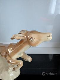 Splendida ed elegante scultura vintage in ceramica raffigurante una gazzella (o daino) in corsa, un pezzo iconico del design italiano della metà del secolo scorso (Mid-Century).