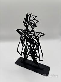 Statuetta in stile Line Art raffigurante Gohan di Dragon Ball, realizzata con stampa 3D in PLA nero.