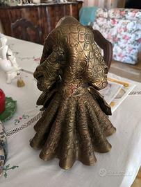 Statuetta in Ceramica Sarda Artigianale - A. Spiga (Assemini) - Donna in Costume. Splendida scultura in ceramica artistica realizzata interamente a mano dal maestro Andrea Spiga di Assemini (Cagliari). L'opera raffigura una donna sarda in abito tradizionale con corbula, rifinita con una pregiata smaltatura bronzo/oro antico che ne esalta i dettagli del ricamo e del velo.