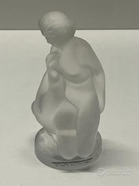 Statuetta in cristallo satinato “Lalique”. raffigura la leggenda di “Leda e il Cigno”. ( Zeus si trasformò in cigno per sedurre Leda, moglie del re di Sparta). Misura in altezza 11 cm e in larghezza 5 cm.