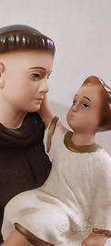 Vendo vecchia statuetta in gesso di Sant'Antonio da Padova con in braccio il bambino Gesù. Altezza circa cm 42,5 base larga cm 12. Presenta dei minuscoli segni visibili nelle ultime due foto, facilmente ritoccabili con un po' di colore. Davvero bella e particolare.