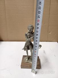 Statuetta In Peltro Cesellato A Mano Con Base In Legno Vintage